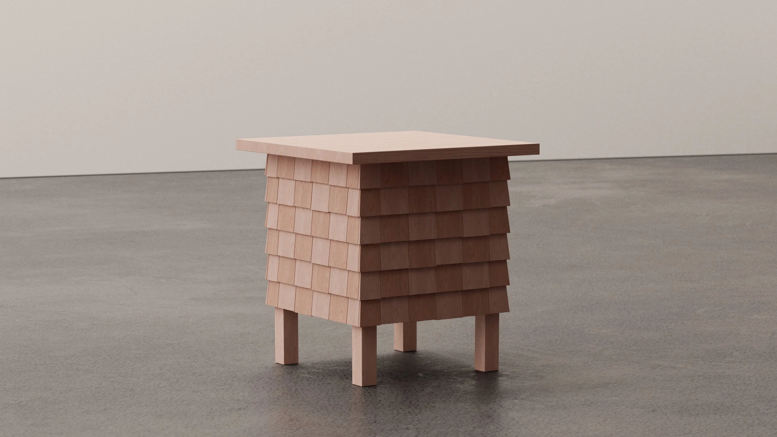 This table boasts straight simple lines and thoughtful proportions, giving the main attention to the cedar shingles. Half of which are lightly stained to create a subtle checkered pattern.